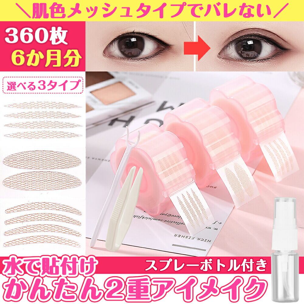 アイテープ メッシュ 水で貼り付け 二重まぶた アイテム ふたえテープ 癖付け アイプチ 360本 180回 6ヵ月分 ピンセット プッシャー スプレーボトル付