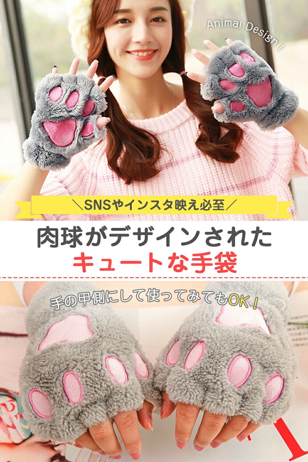 手のひら部分に肉球がデザインされたキュートな手袋。