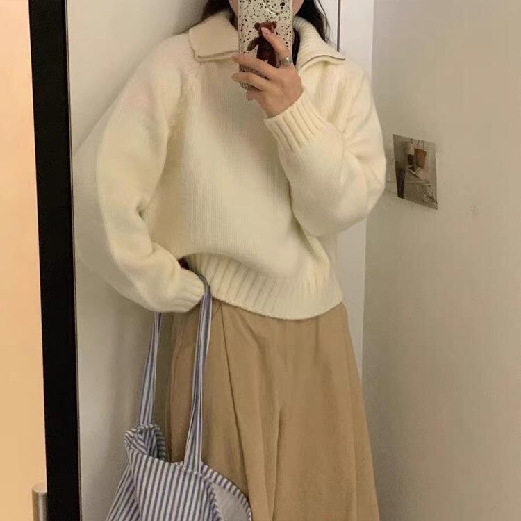 ニット トップス レディース セーター ハーフジップ セーラーカラー サイドスリット オーバーサイズ 体型カバー 暖か 春 秋 冬