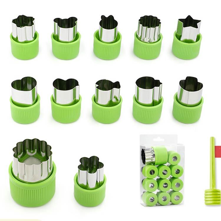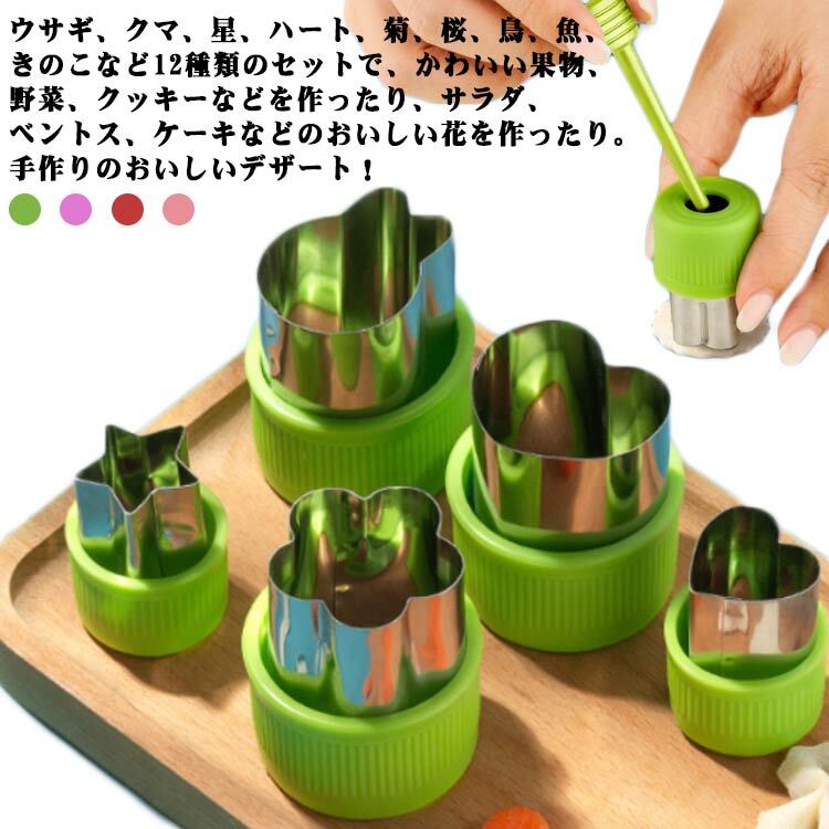 ウサギ、クマ、星、ハート、菊、桜、鳥、魚、きのこなど12種類のセットで、かわいい果物、野菜、クッキーなどを作ったり、サラダ、ベントス、ケーキなどのおいしい花を作ったり。 、手作りのおいしいデザート!