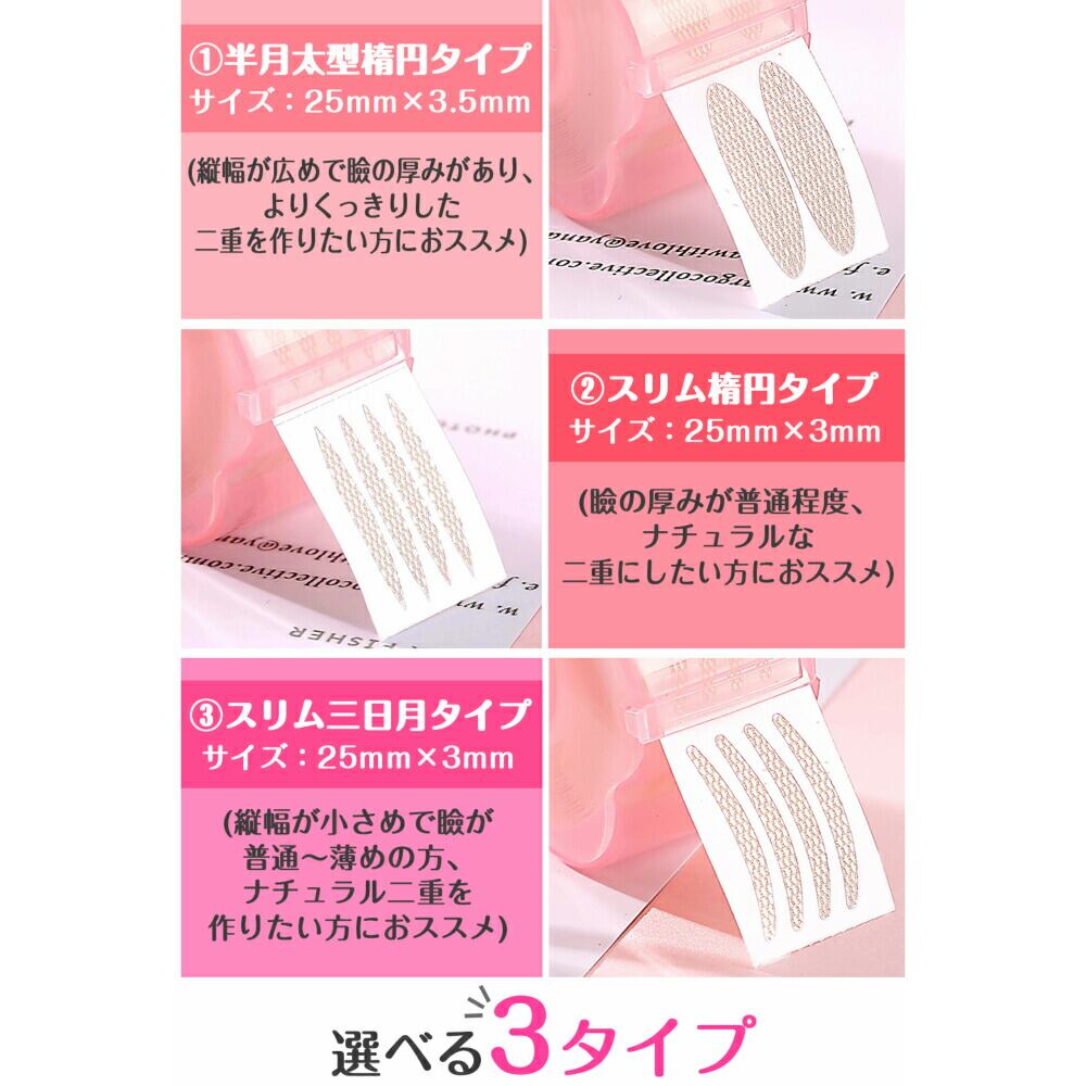アイテープ メッシュ 水で貼り付け 二種類(形状): 半月太型楕円タイプ スリム楕円タイプ スリム三日月タイプ