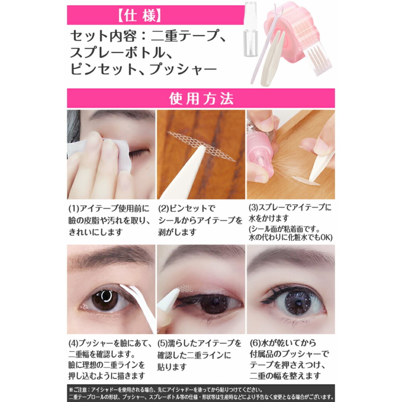 アイテープ メッシュ 水で貼り付け 二重まぶた アイテム ふたえテープ 癖付け アイプチ 360本 180回 6ヵ月分 ピンセット プッシャー スプレーボトル付