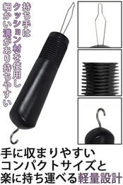 糸通しの要領でボタン穴に差し込み、引き出してボタンをかける器具です。