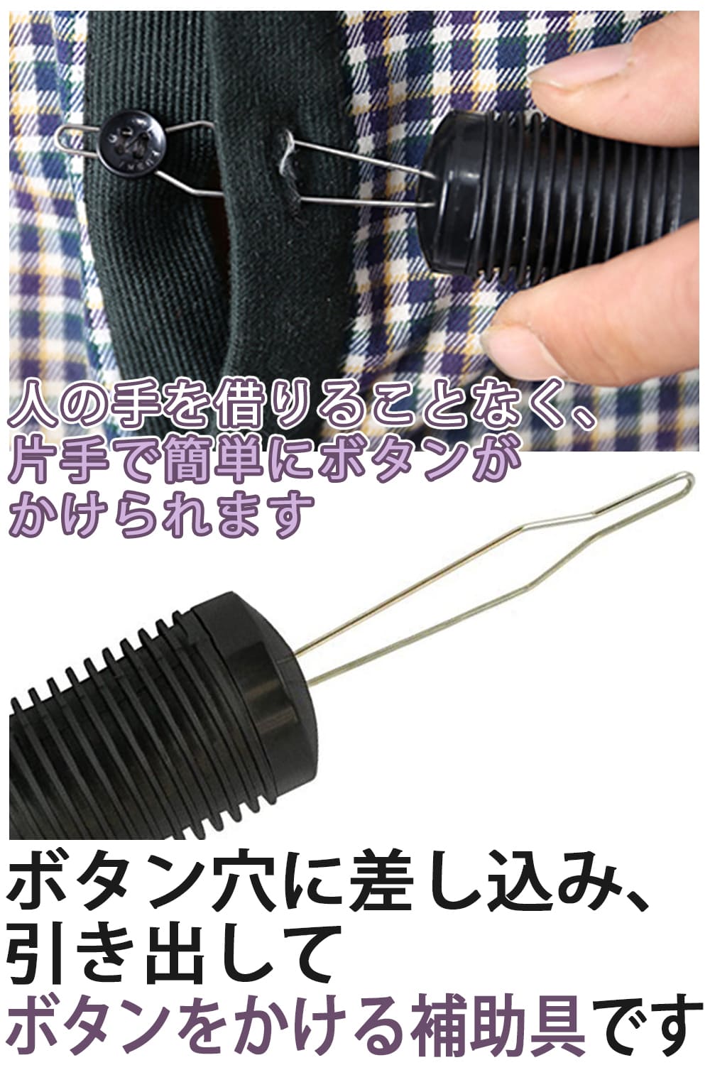 ボタンエイド ボタンフック 片手で簡単 ボタン留め ボタン掛け 自助具 ファスナーフック ジッパーフック 軽量 握りやすい 自分でボタン