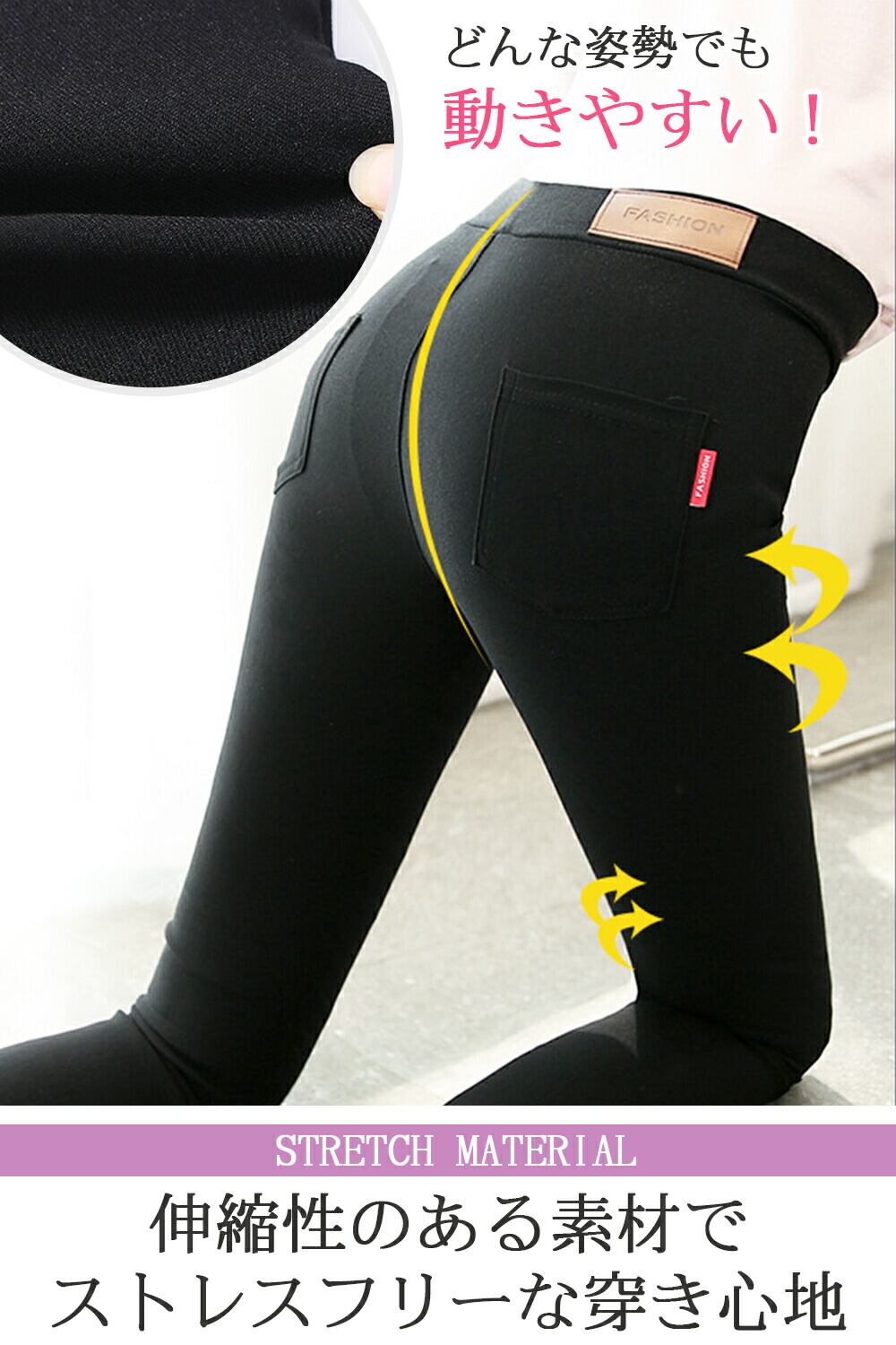 伸縮性のある素材で動きやすく、あらゆる姿勢でストレスフリーな穿き心地を実現しました!