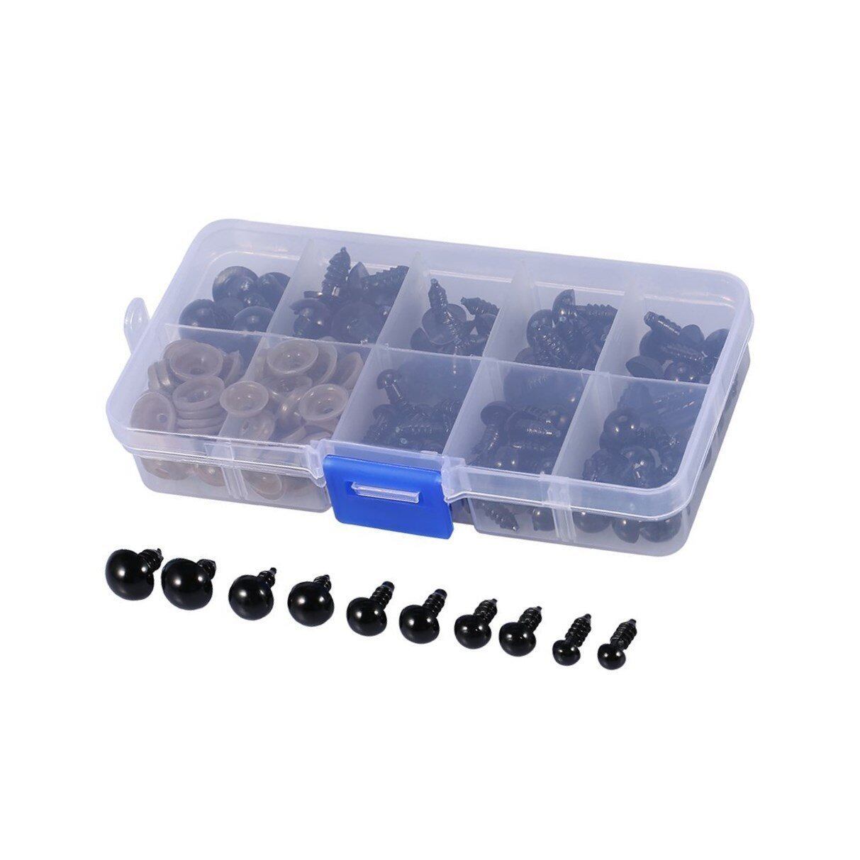 6mm、7mm、8mm、10mm、12mm、5サイズ各20個ずつでぬいぐるみに必要なぬいぐるみ目は全部揃っています。