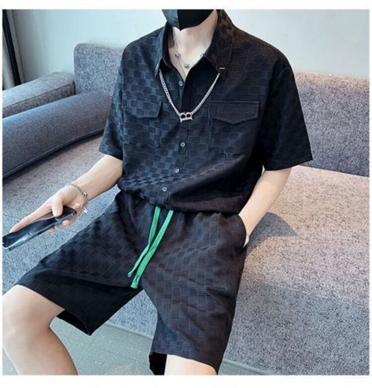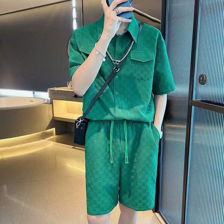 上下セット サマーセット ビッグシルエメンズファッション 通販Color: ブラック ホワイト グリーン Size: M L 2L 3L 4L 5L