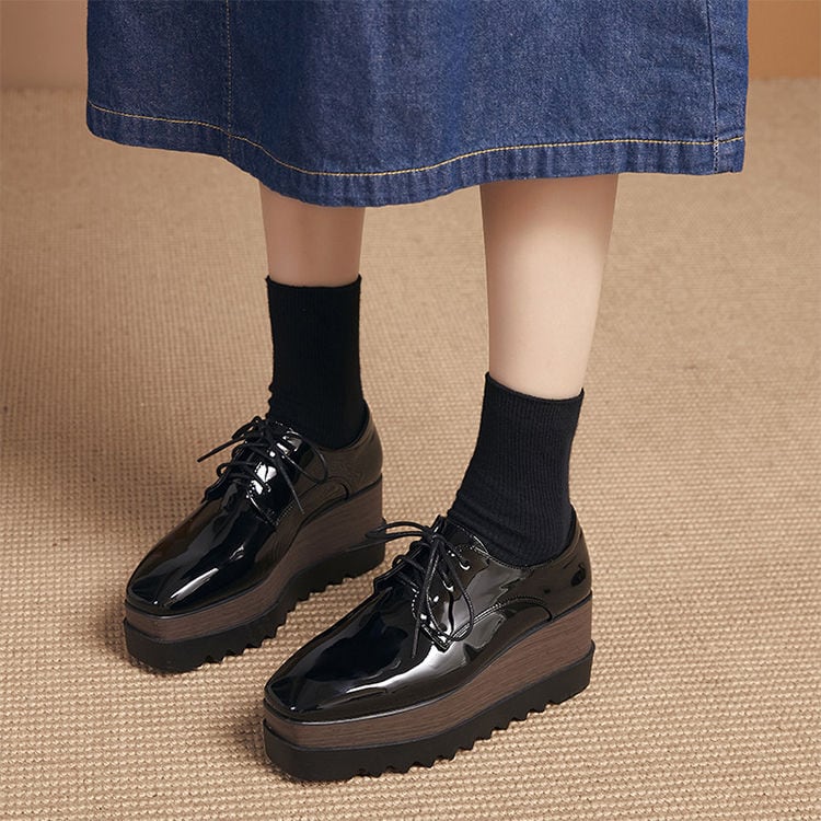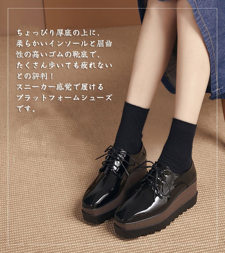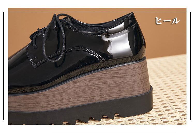 ローファー パンプス ブーティ プラットフォームシューズ 厚底スニーカー レディース エナメル シューズ 22-24.5cm ウェッジソール レースアップ 黒 厚底 靴 学生靴 通学 通勤通学