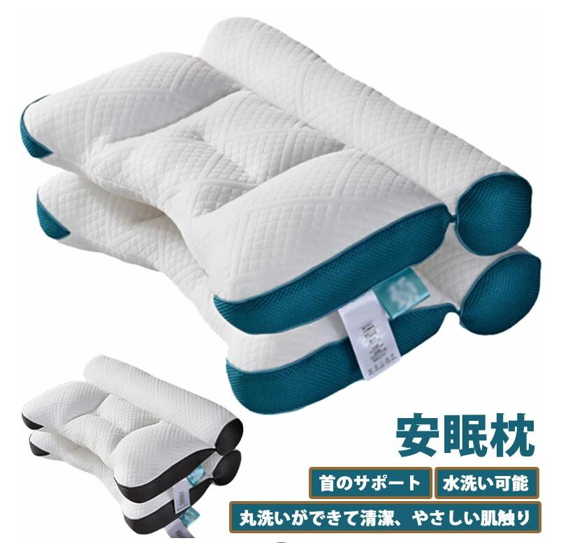 枕安眠 肩がラク 低反発 まくら 中空寝具 枕 抱き枕 枕 人気Key0: ブルー ブラック