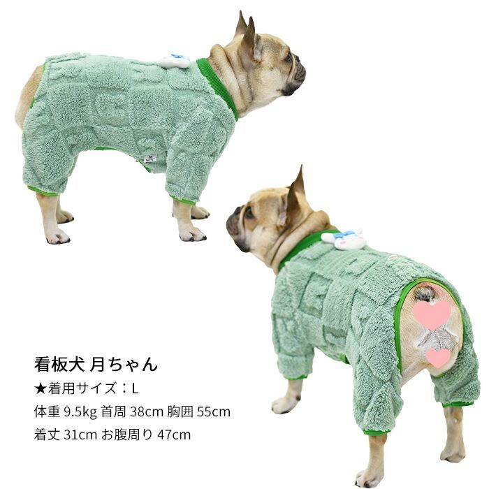 ふわもこロンパース あったか 厚手ロン犬用品 ドッグウェア つなぎ カバーオール 特集サイズ: Mサイズ Lサイズ XLサイズ 2XLサイズ カラー: A:グリーン(うさぎマスコット) A:ブラウン(うさぎマスコット) B:ピンク(フレブルタグ) B:ダークグレー(フレブルタグ)