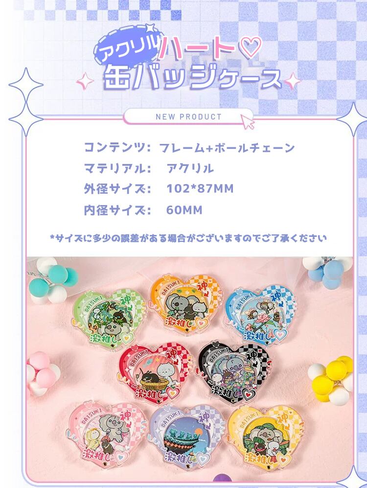 缶バッジ ケース カバー アクリル フレーム 缶バッジ保護 キーホルダー アクキー グッズ収納 かわいい ハート形 チェーン