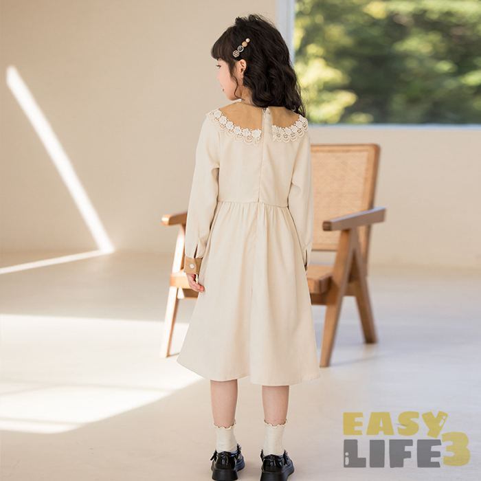 子供服 フォーマル ワンピース 小学校 入学式 卒業式 卒園式 女の子 キッズ 子供 ジュニア 長袖 リボン レース 膝丈 おしゃれ 小学生 フォーマルワンピース 可愛い 結婚式 発表会 普段着 七五三 春秋 カジュアル 通学 ベージュ 120 130 140 150 160 170 お受験 卒服 面接 襟