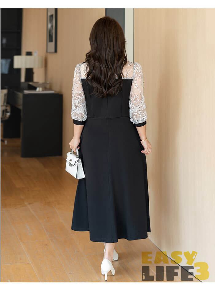 パーティードレス 大きいサイズ レディース レース ワンピース おしゃれ 長袖 ロング ひざ下 きれいめ 切り替え フォーマルワンピース ドレス セレモニー 入学式 入園式 卒園式 卒業式 七五三 フォーマル 母 ママ リボン Aライン 結婚式 ストレッチ 二次会 20代 30代 40代 50代 披露宴 ブラック