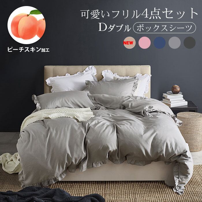上品な雰囲気でフリル付き布団カバーセット ダブル 4点セット 掛け布団カバー まくらカバー ボックスシーツ 新生活 柔らか 優しい 肌触り 寝具 掛布団 丸洗いOK 吸汗 速乾