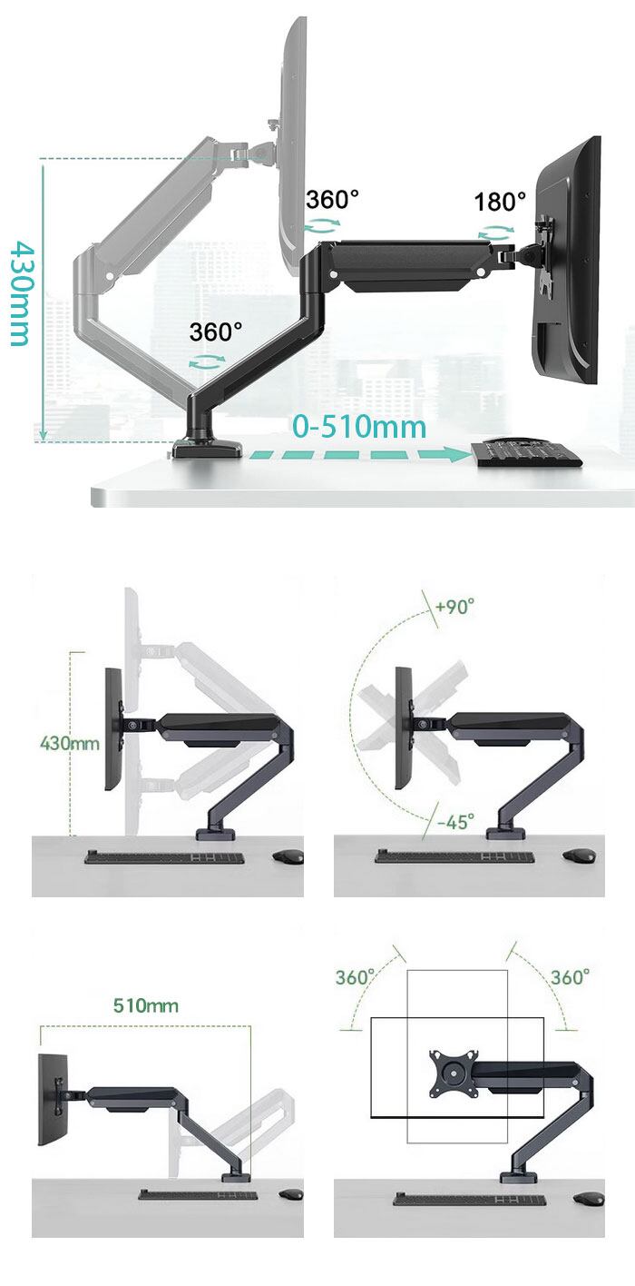 次世代のモニターアームが登場した 高さと角度が調節するでき、お好みの位置に設置できるので、作業効率が上がります 組み立て簡単、必要な工具と金具はすべて付属されています