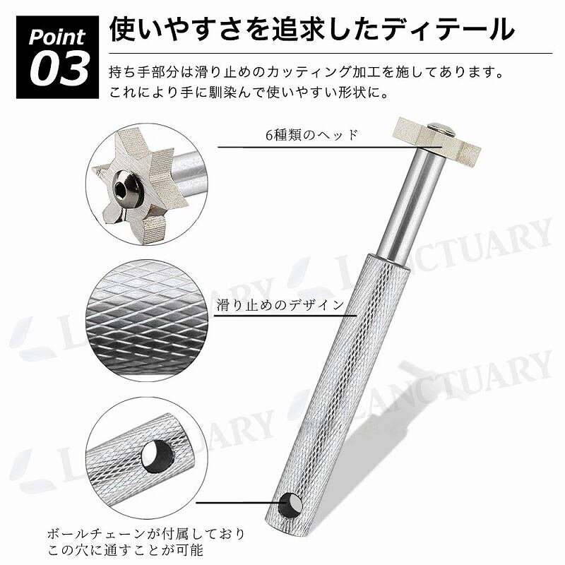 V字とU字、2種類のブレードを備えた6つのヘッドで細かい部分の汚れやさびをしっかりと除去できます。