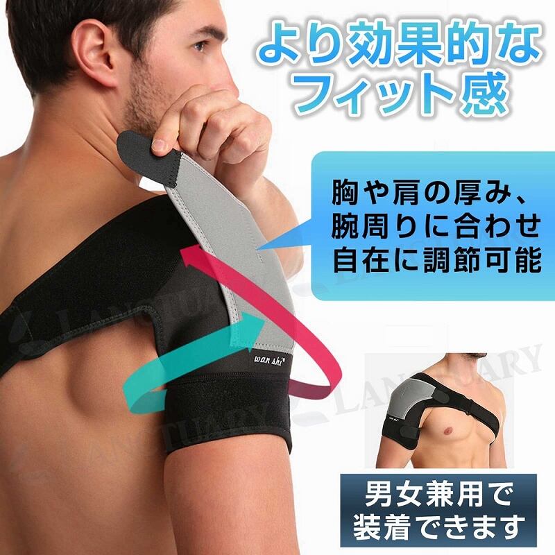 スポーツ時の使用や怪我のサポート、四十肩や五十肩などの加齢による肩の痛みや負担軽減、リハビリにもご使用いただけます。また長時間のデスクワークなどによる作業の肩こりや痛みの軽減のご使用もおすすめです。主な仕様 【サイズ】