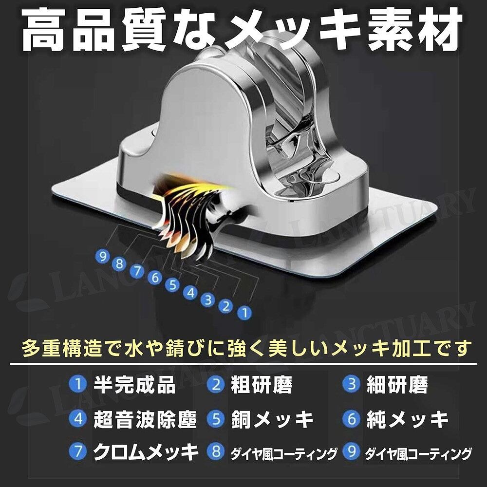 様々なシャワーヘッドに対応し円錐型の溝がヘッドをキャッチ!高密着でがっちり固定します。2個セットなのでお好みの高さを2箇所設置できます。