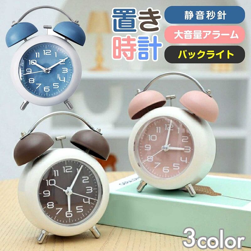 置き時計 目覚まし時計 アラーム バックライト アナログ レトロ 卓上 デスク 大音量 静音秒針 連続秒針 分刻み 電池式 ベル式 おしゃれ 韓国風 北欧
