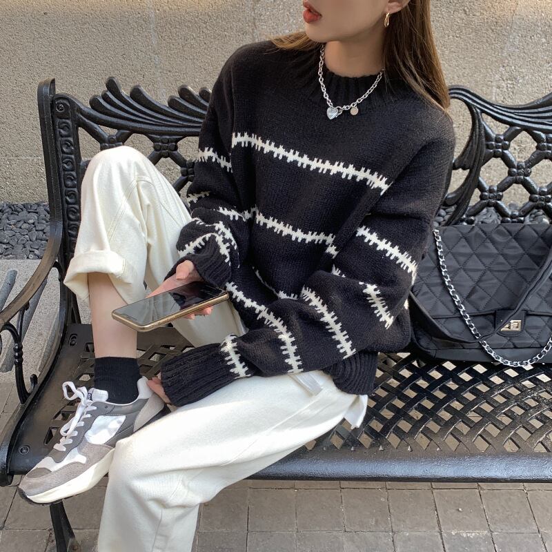 セーター ニット 秋 冬 ボーダ柄 長袖 レディース ニットセーター プルオーバー トップス 無地 ゆったり シンプル インナーニット 着回し