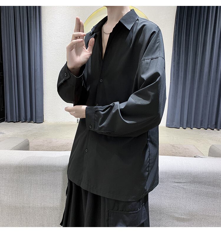 薄手 長袖 シャツ メンズ 無地 ワイシャツ ドロップショルダー オーバーサイズ シンプル カジュアル トップス ダンス モード系