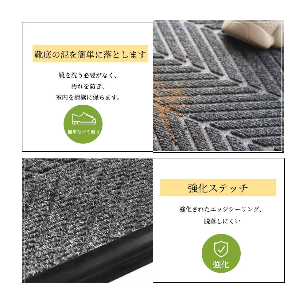 【泥落とし&吸水】屋内、屋外でお使いいただける泥落としマットです。玄関マットの上で数回こするだけで、靴に付着したほこりや泥、雪などを取り除き、床を清潔で乾いた状態に保ちます。雨傘やレインコートから滴る水を瞬時に吸収、優れた吸水機能で、雨の日でも室内を清潔に保ちます。