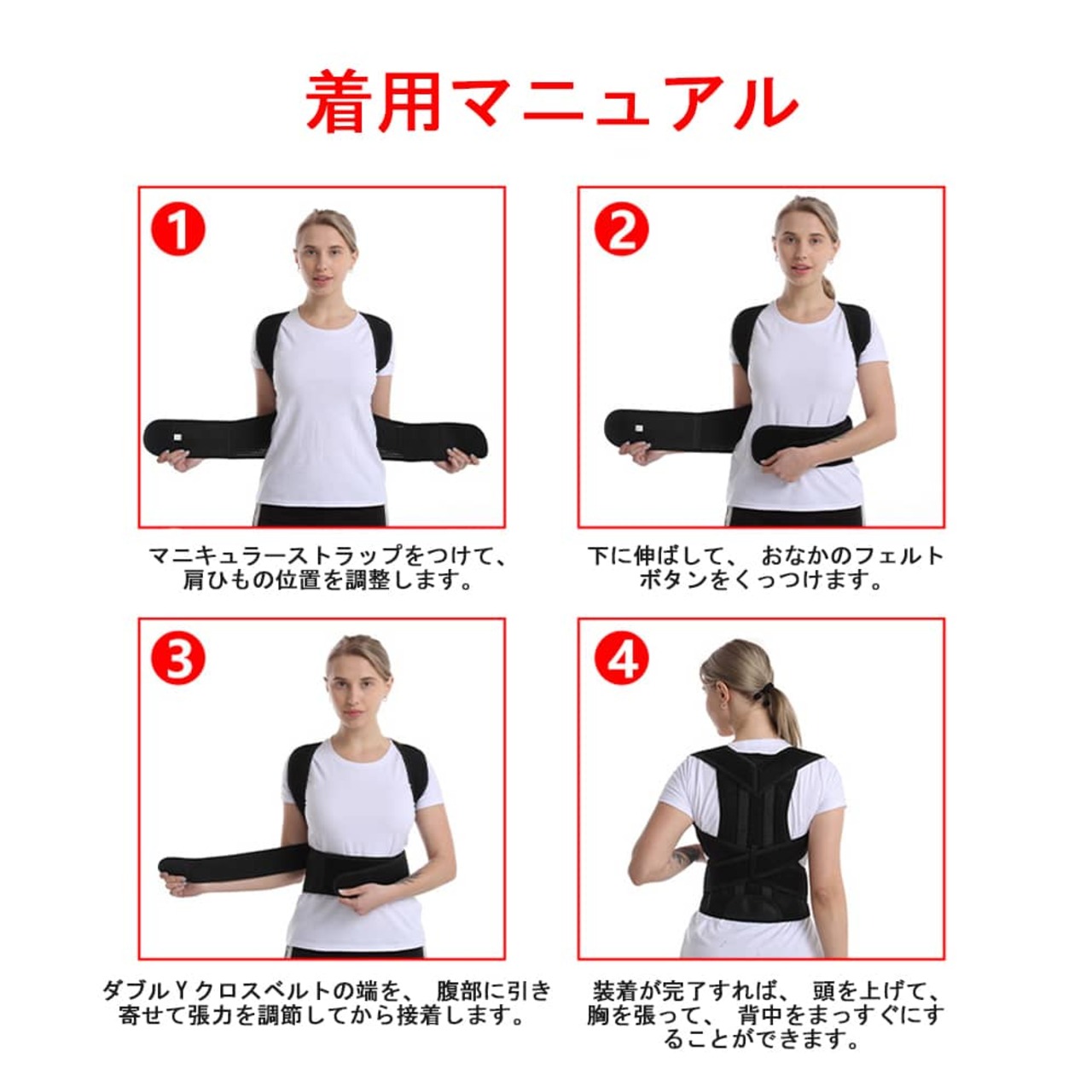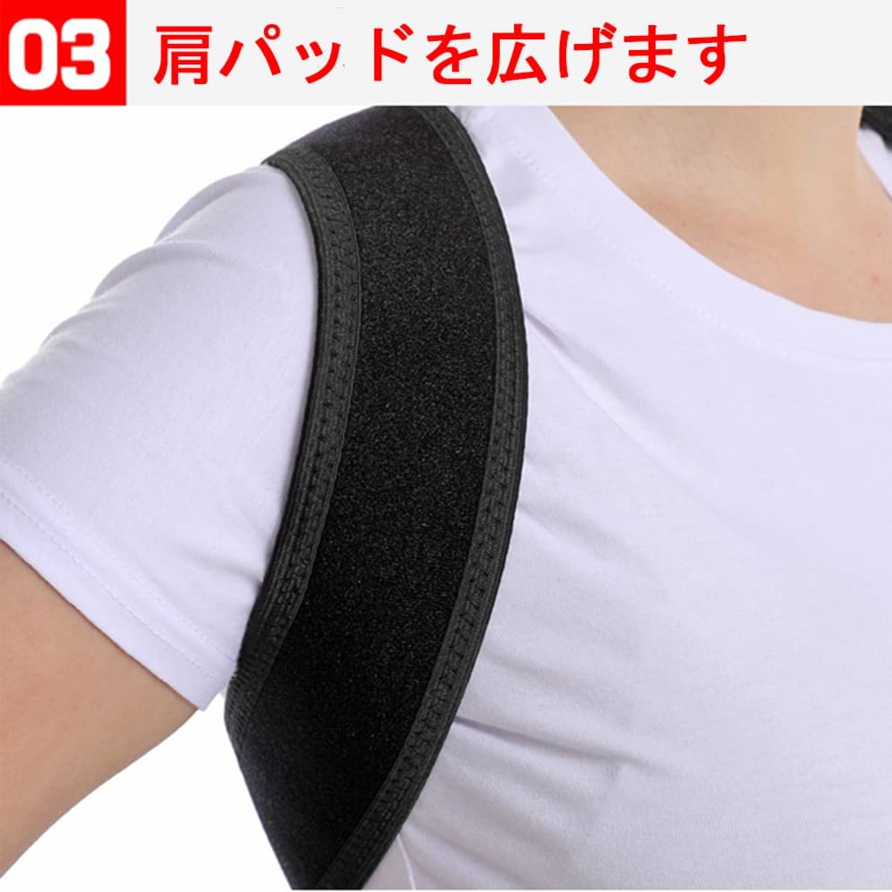 【姿勢ブレース機能】 1設計支援は背中と肩を正しい姿勢を助けます。 2正しい姿勢に戻って肩&背中を引っ張ります。 3穏やかなバックサポートを提供します。 4男女兼用の非制限ユニセックスデザイン。 5マジックテープ調整可能な快適&着やすいです。