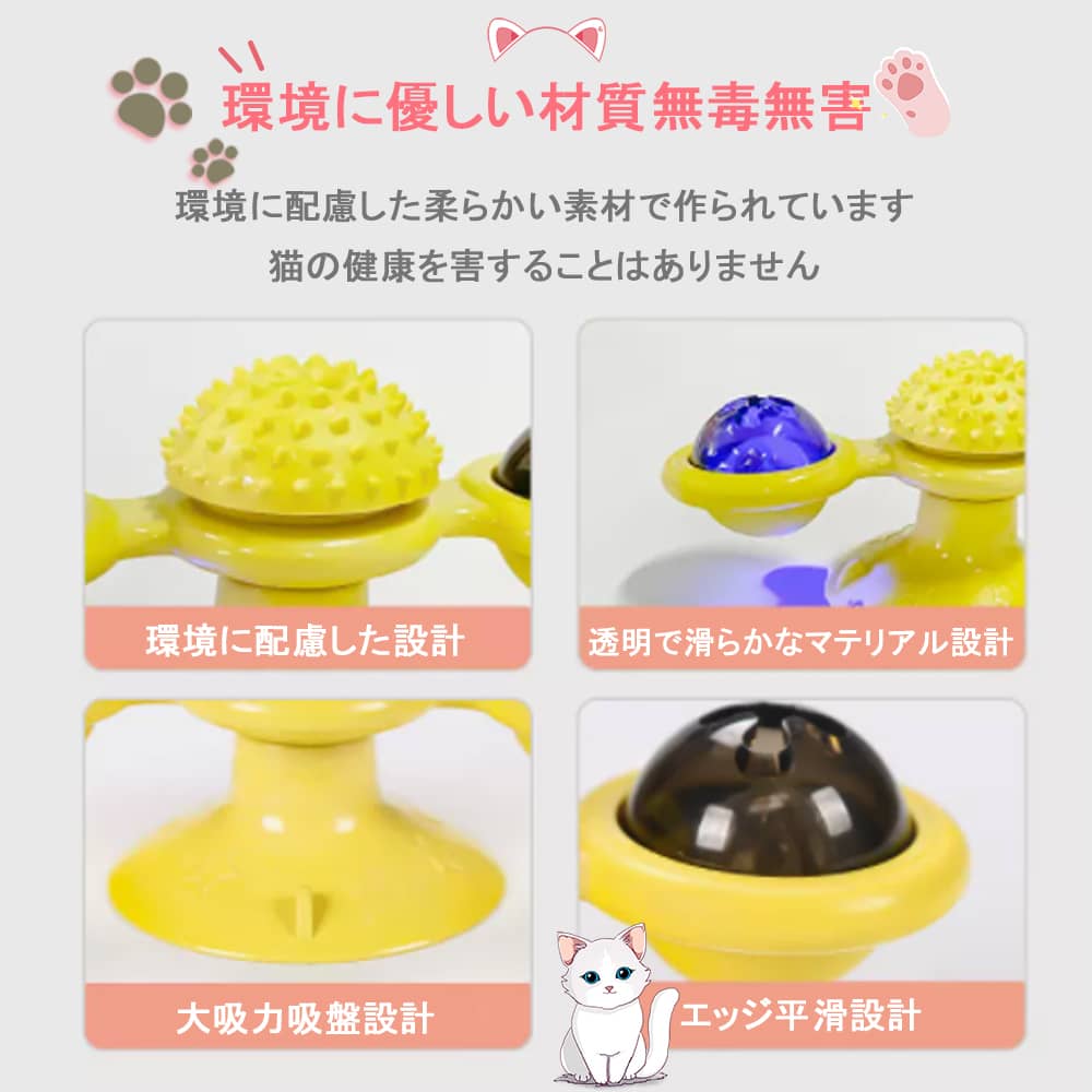 インタラクティブな猫のおもちゃ - 安全な素材: この風車猫のおもちゃは素材で作られています。この素材は非常に柔らかく、猫を遊び中の危害から効果的に保護します。