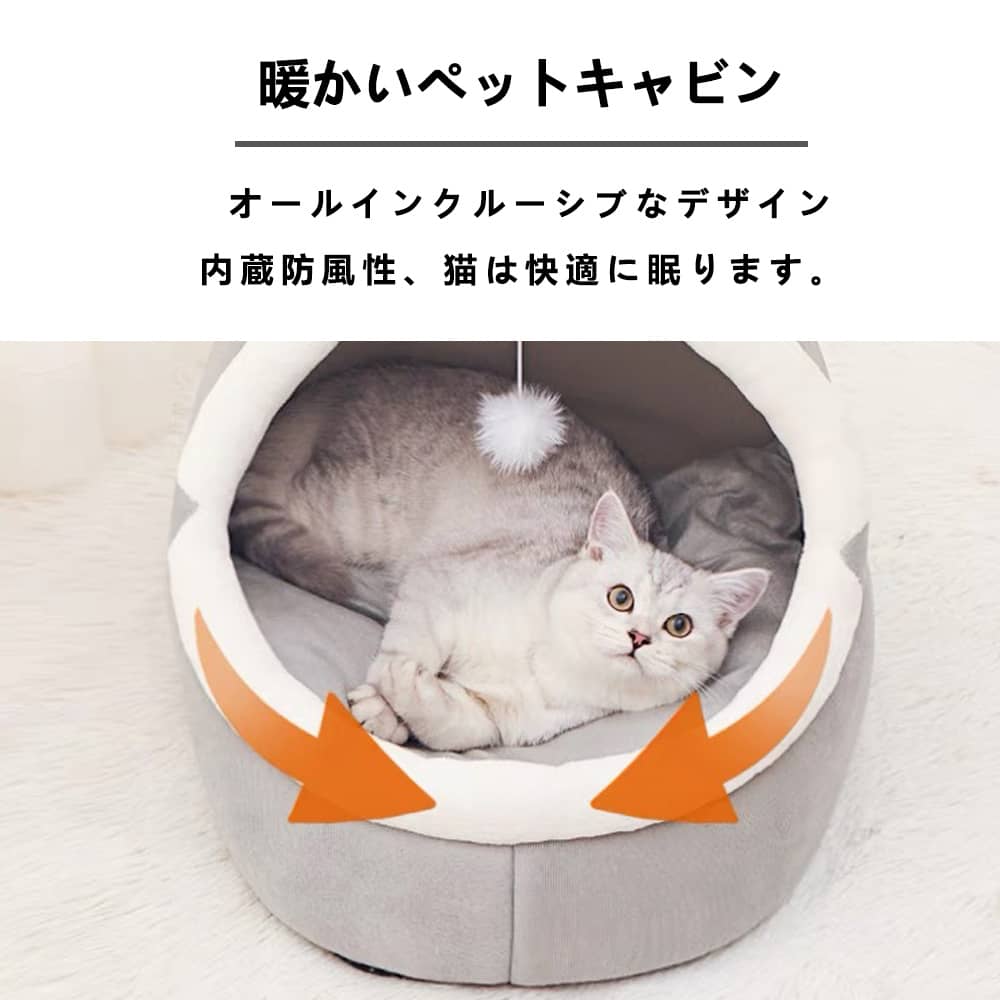 猫 ハウス ドーム型 キャットハウス 猫のベッドの洞窟 猫 寝床 犬猫のペットの巣 猫の洞窟ベッド 猫ハウス 洗えるクッション付き猫テント 猫 ベッド ペットどーむハウス猫かわいい 小動物に通用する