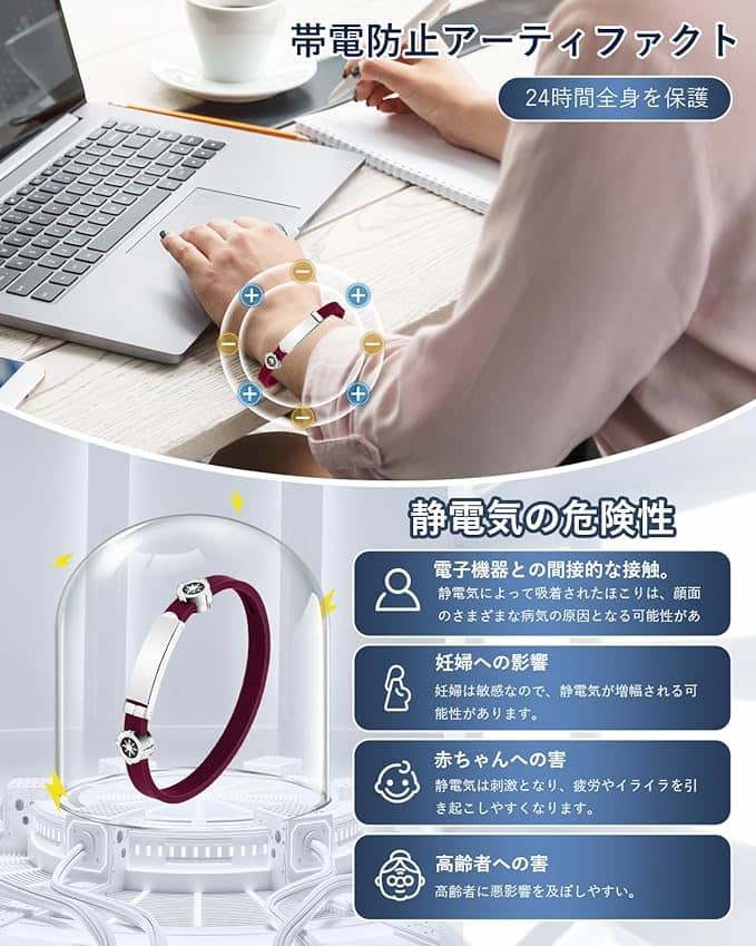 ・【オールシーズン着用可能】静電気軽減効果はもちろん、チタン・ゲルマニウムの効果で健康アクセサリーとしての効果も期待できます。静電気が気になる季節だけではなく、オールシーズン着けられるシリコンブレスレットです。静電気防止ブレスレット:静電気防止ブレスレットだけでなく、ファッションアクセサリーでもあります