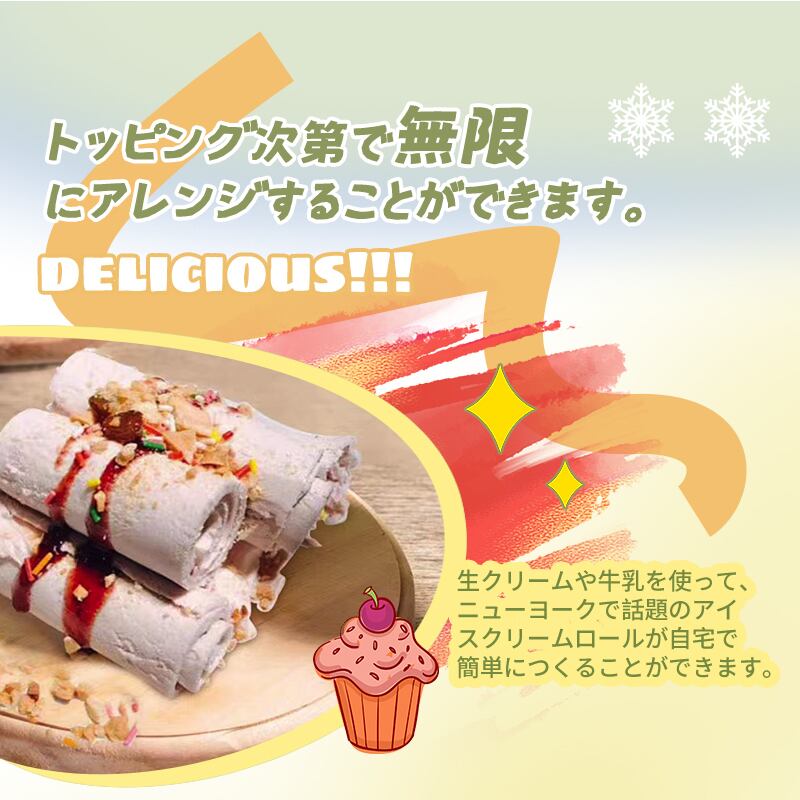 ロールアイスクリームメーカー 304ステンレス製 ハピロール アイスクリームメーカー シャーベットメーカー ジェラート ロールアイス プレート ヘラ2本付 子供 家庭用