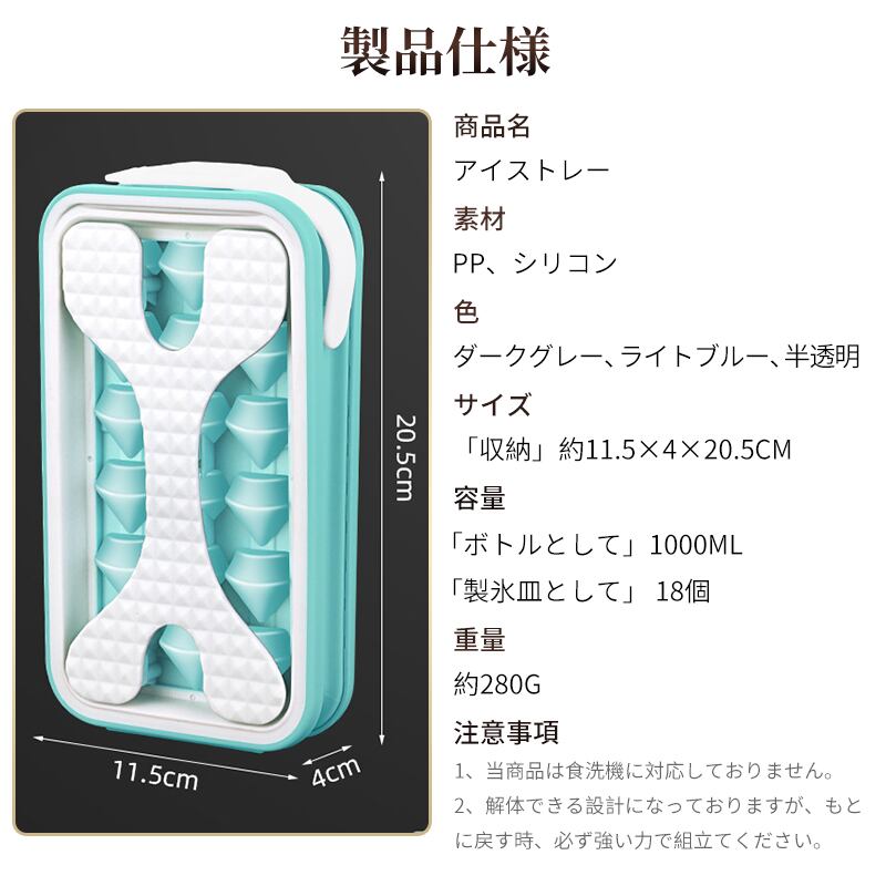 製氷皿18個 水筒 密閉型 漏れ防止 キッチン用品 食器 調理器具 お得なセールカラー: ダークグレー ライトブルー 半透明