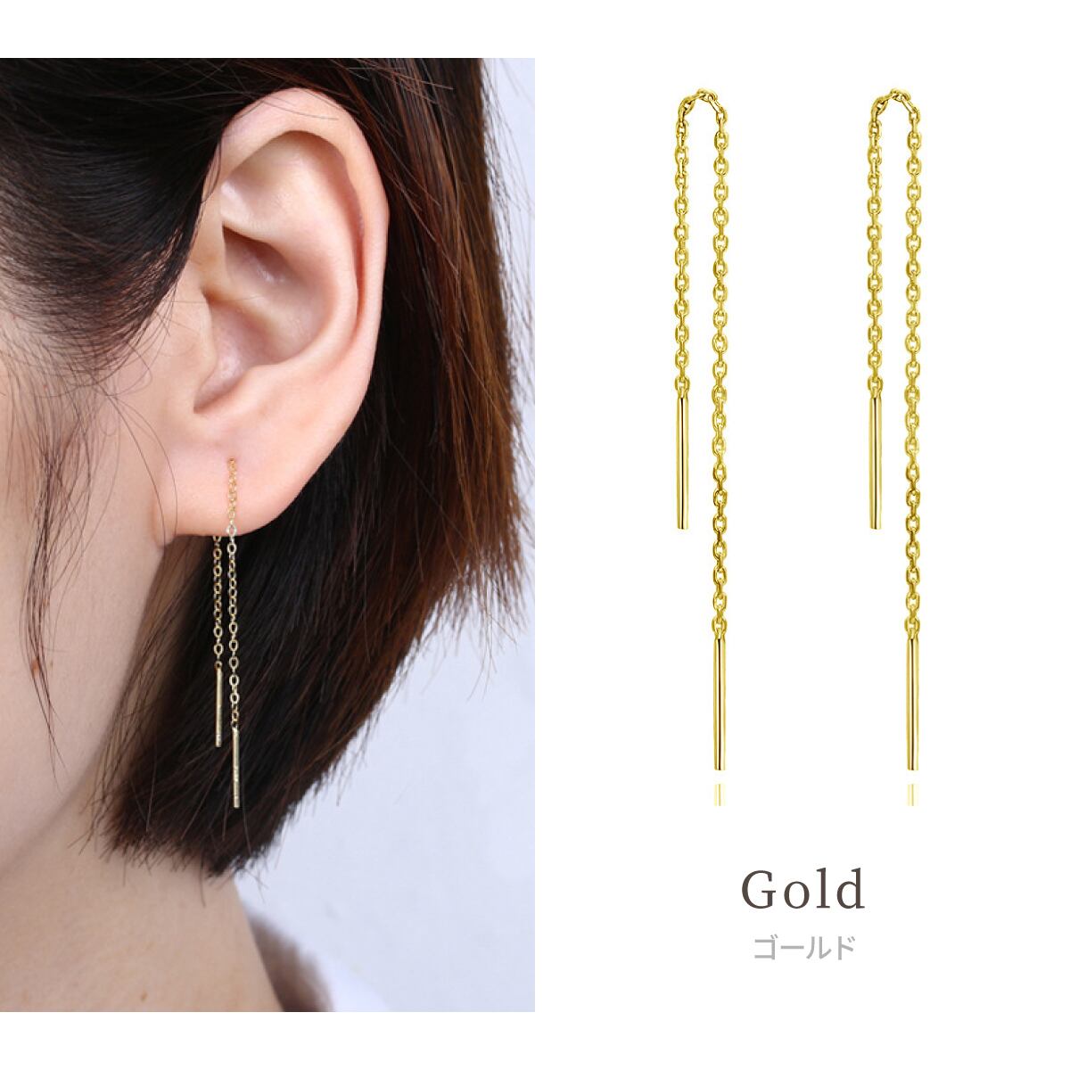アメリカン ピアス チェーン ピアス ジュエリー アクセサリー 豊富カラー: ゴールド シルバー ローズゴールド