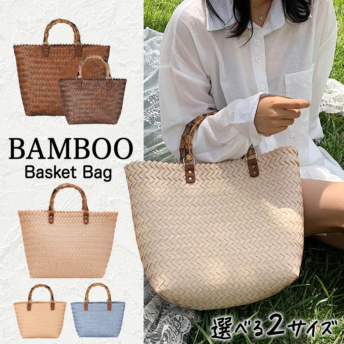 夏らしいかごバッグ 選べる2サイズ 持ち手は使いやすいバンブーハンドルです♪ おしゃれ かわいいバッグ 小物 ブランド雑貨 バッグ レディースバッグ かごバッグ