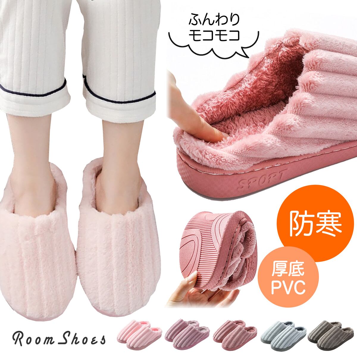 ルームシューズ スリッパ メンズ レディース 23cm〜27.5cm ピンク レッド パープル ブルー ブラウン あったかい 暖かい あったか 冷え対策 もこもこ ふかふか やわらかい 柔らかい 室内