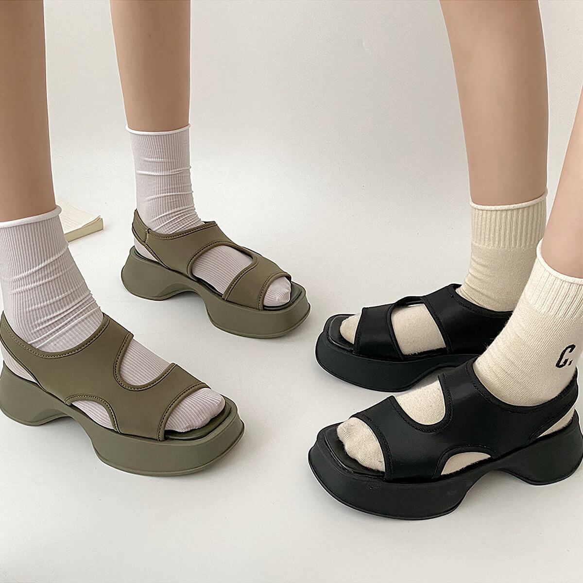 定番のブラックとくすみカラーのカーキ スポーティにもきれいめにも 幅広いコーディネートにぴったりなサンダル