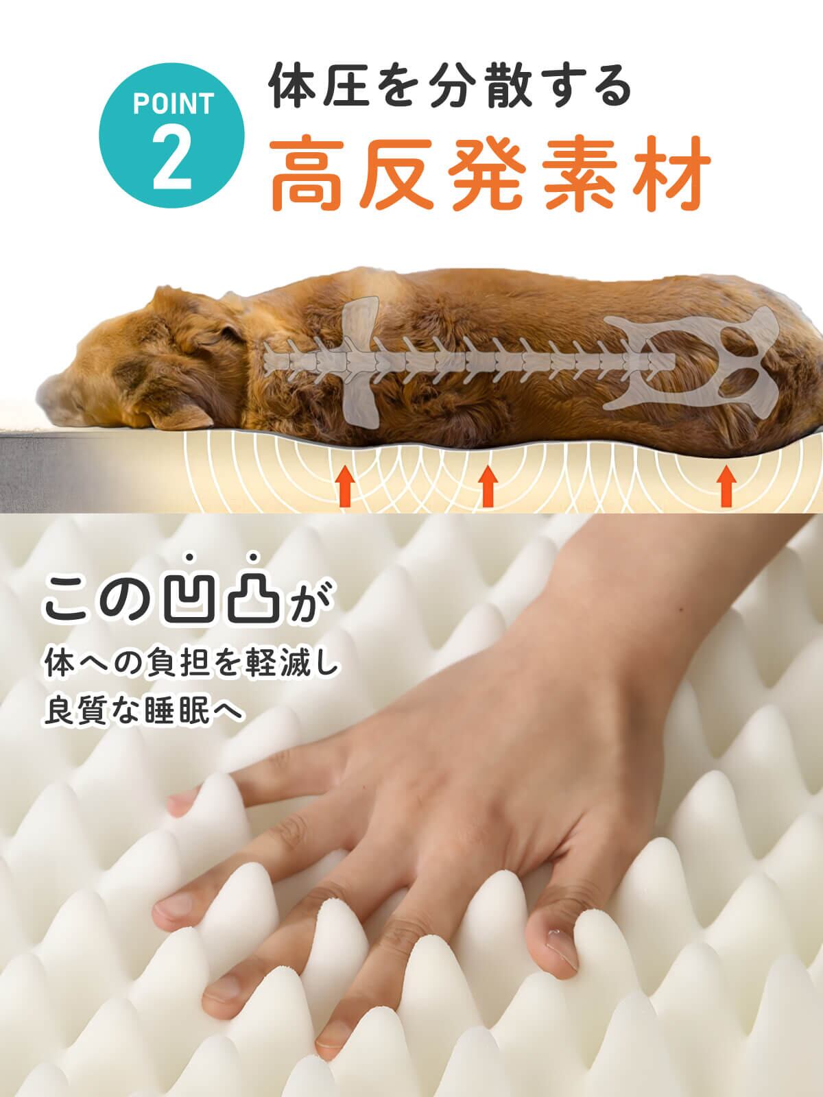点で支えて体圧を分散する高反発波形設計で、