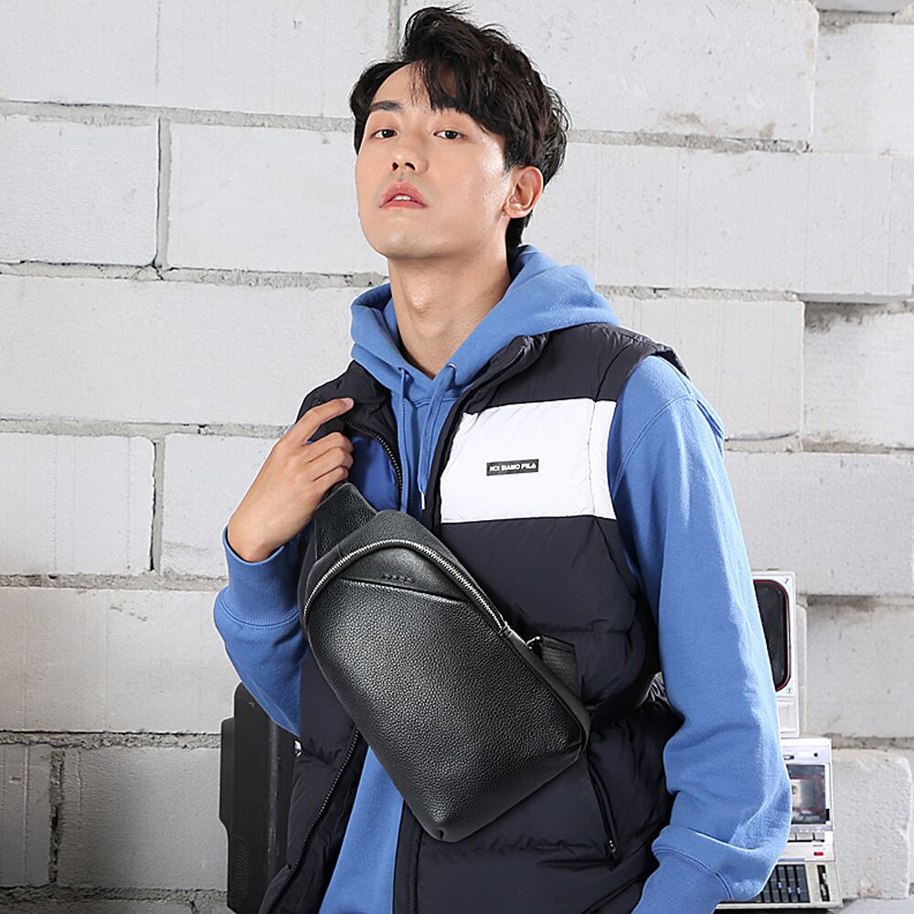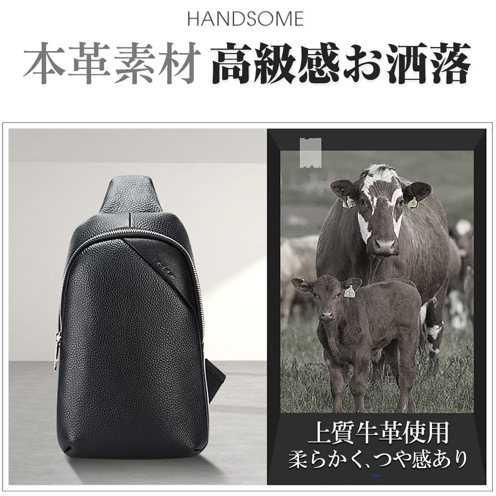 本体レザー使用、牛皮の柔らかさと模様そのまま、高級感。バッグ専門デザイナーの設計と職人の丁寧な縫製、こちらクラシックブラックのボディーバッグを作り上げた。