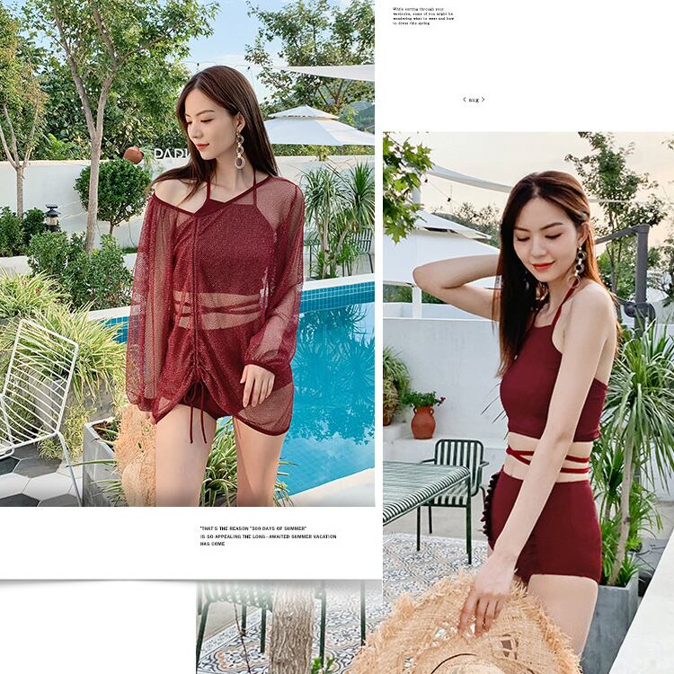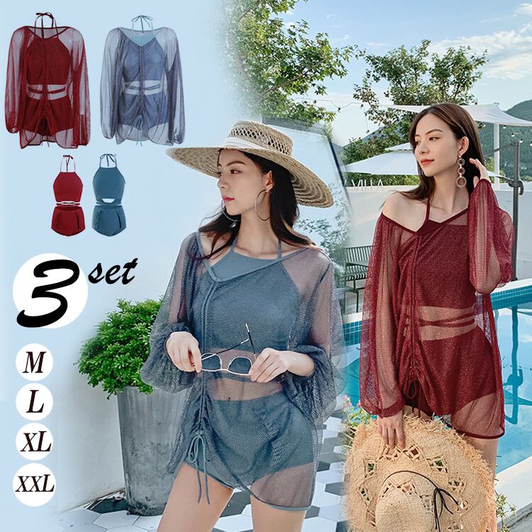 3点セット 可愛い水着ショーツのベルト水着 新作Key0: ワインレッド ブルー Key1: M L XL 2XL