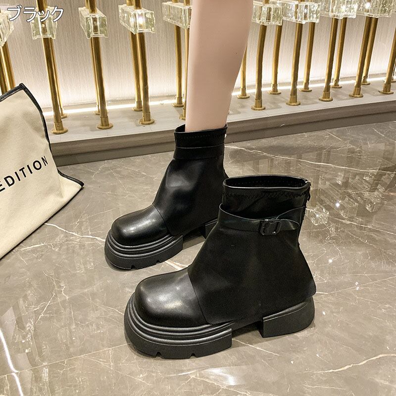 レディース 厚底ブーツ 脚長効果 美脚 可愛い 暖かい デート おすすめ おしゃれ 人気 韓国ファッション ブラック カーキ ベージュ22.5~25cm