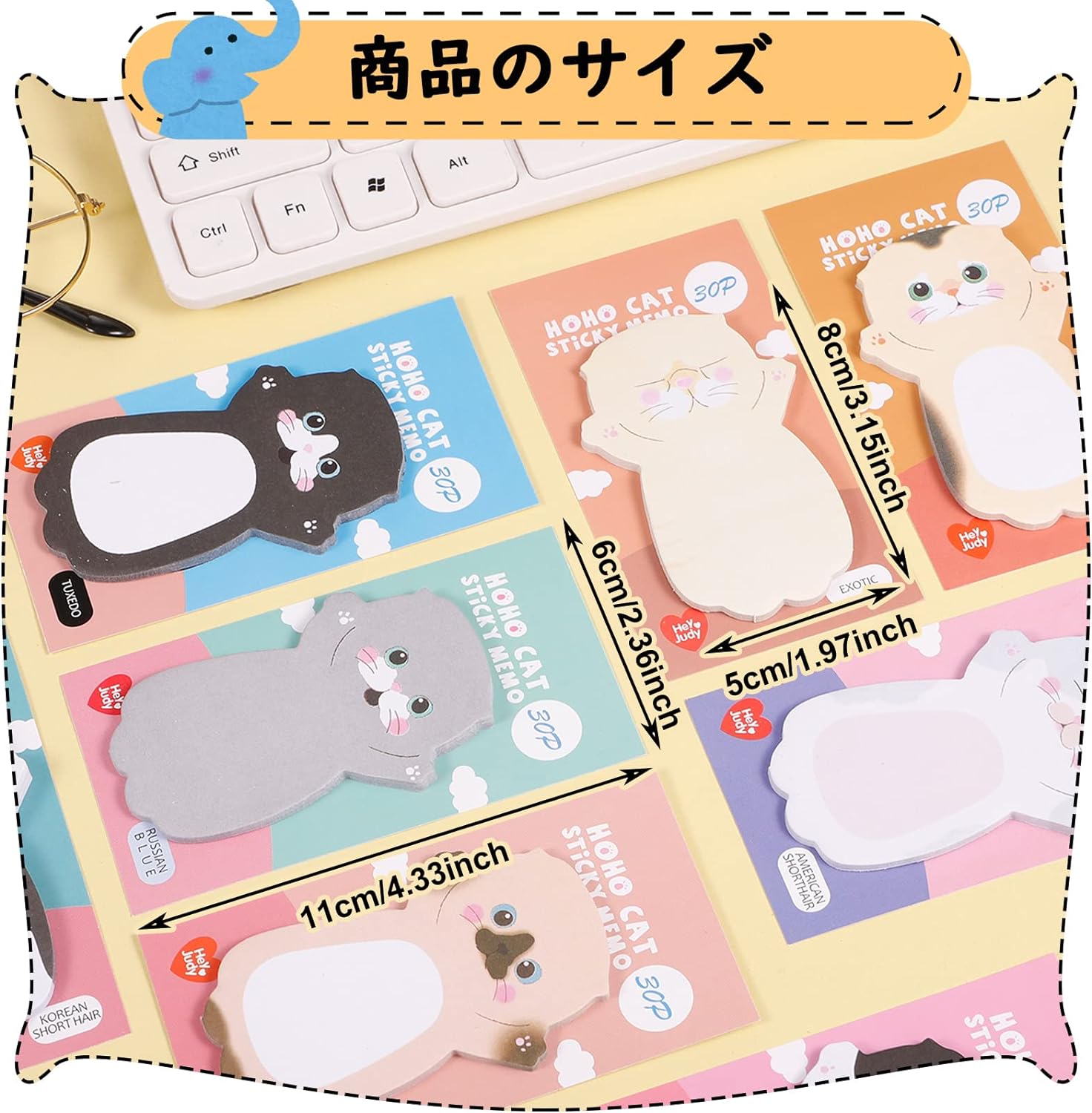 【セット内容】8本(30ページ/本)のかわいい付箋が入っており、デザインに8種類のメモ用紙があります。猫の形を採用しているため、それぞれのサイズがが異なり、詳細は製品の画像をご覧ください。