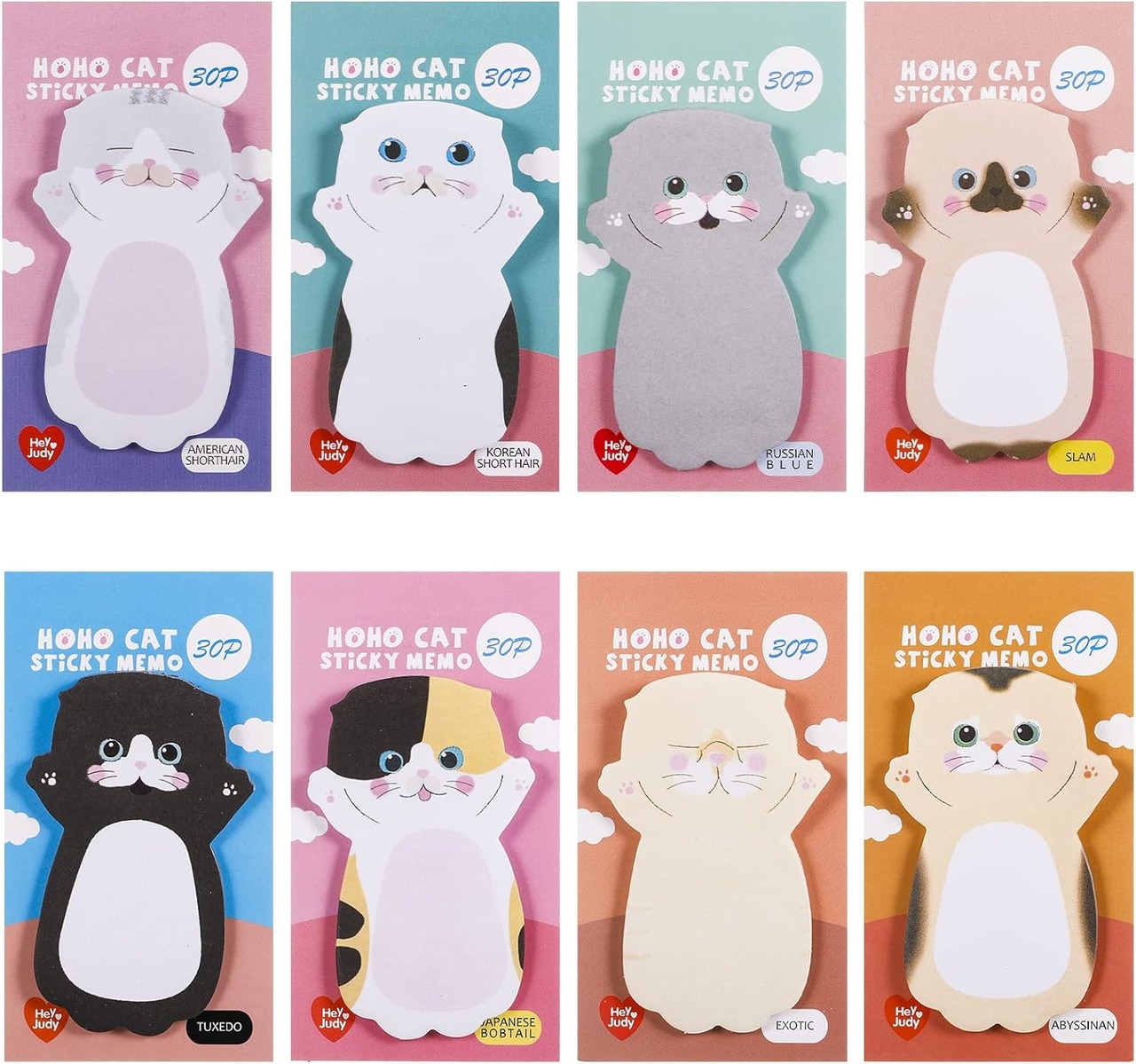 【見た目も素敵】8種類の猫柄の付箋ノート。各付箋のサイズは約6x11 cm で、持ち運びが簡単です。重要なメッセージを書き留めたりすることができます。