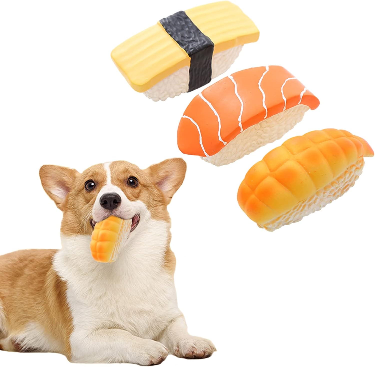 【3セット】エビ寿司、サーモン寿司、玉子焼寿司三つのおもちゃが含まれています。小型犬と中型犬、仔犬にオススメです。