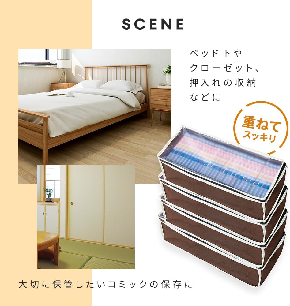 【通気性のよい不織布】通気性の良い不織布素材でできているので、大切に保管したいコミックの保存にピッタリ。ベッド下やクローゼット、押入れの収納などに。