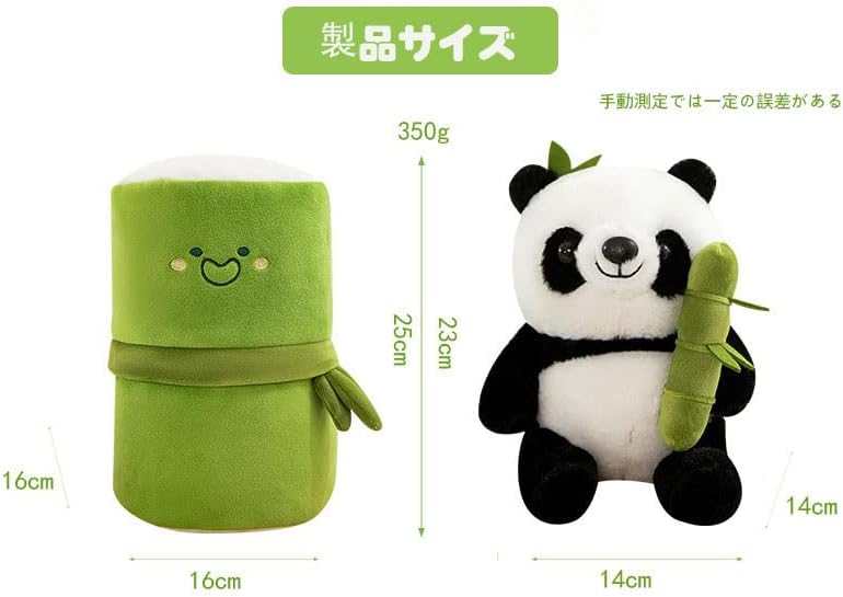 【良質材質】精巧な加工、良質なPP綿を用いて作られた。ふんわりとした手触りで、柔らかくて快適で、敏感肌を傷つけたり刺激したりする化学物質は含まれていません。安全で肌に優しく、洗いやすいので、直接冷水で洗うことができます。竹の筒の外観は美しい刺繍を用いてかわいい模様をデザインしており、中には竹を抱いたパンダが入っており、全身がふわふわしていて、抱いているのがとても気持ちがいい。
