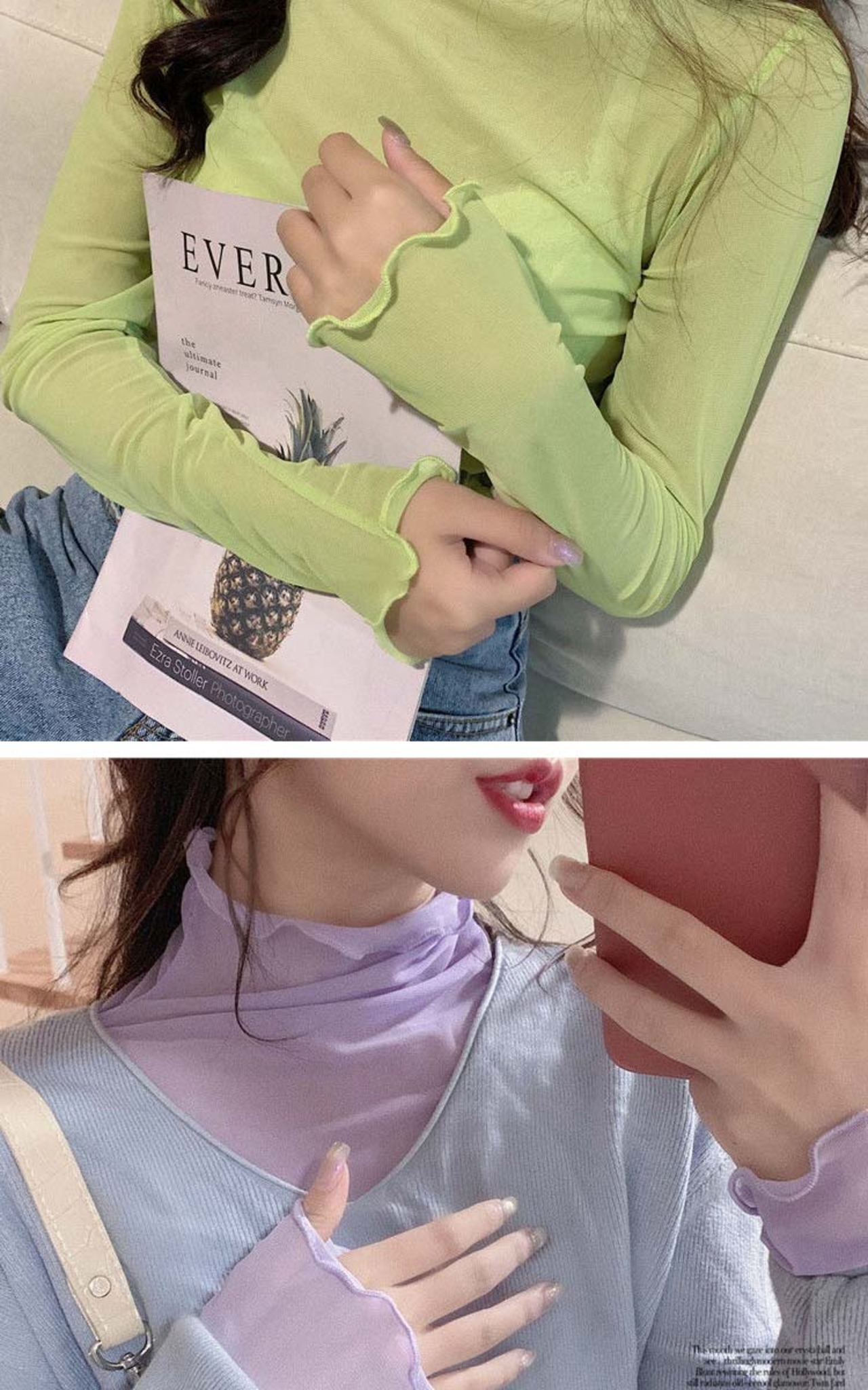 レーストップス シアートップス シースルートップス 長袖 ハイネック 透け感 レイヤード 冷房 紫外線対策 薄手 日焼け防止