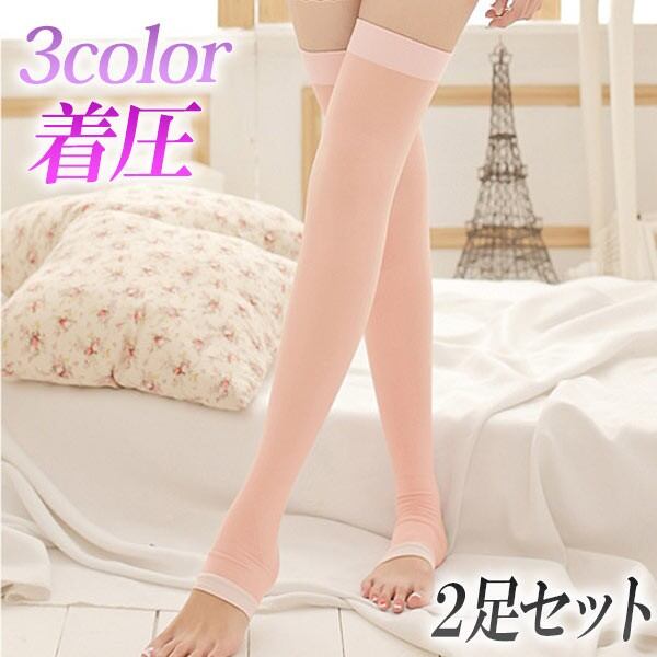レディース ニーハイ 美脚 むくみ フレディース 靴下 レッグウェア 靴下 豊富1足目カラー: パープル ピンク ブラック 2足目カラー: パープル ピンク ブラック