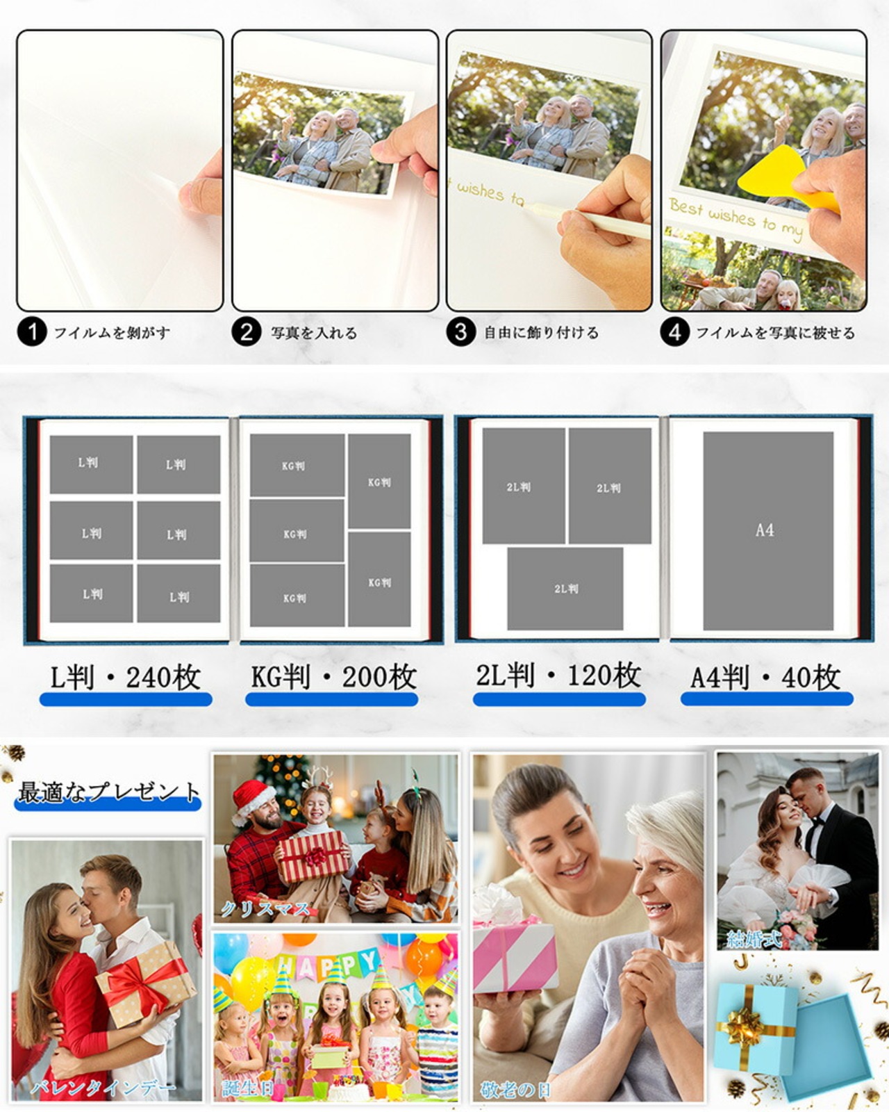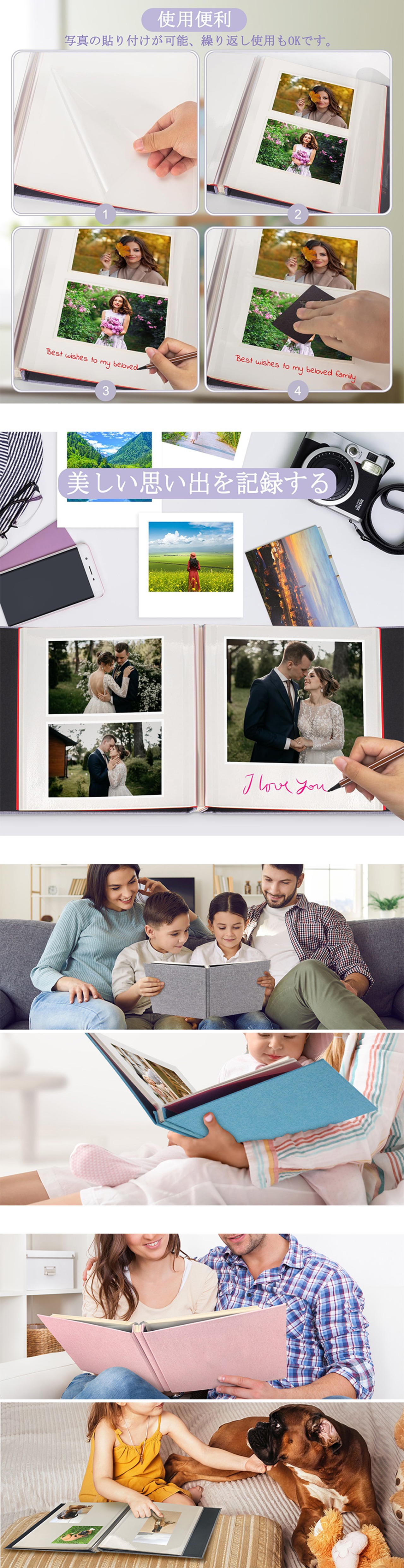【様々な場合に適用】アルバムの写真を通して、人生の幸せな瞬間を思い出すことができるのです。子供の成長記録、DIY写真集、卒業記念集、フォトコレクション、家族やお友達とのフォトアルバム、退職される方へのメッセージ、結婚記念日のプレゼント、ポストカードアルバムなどご利用いただけます。