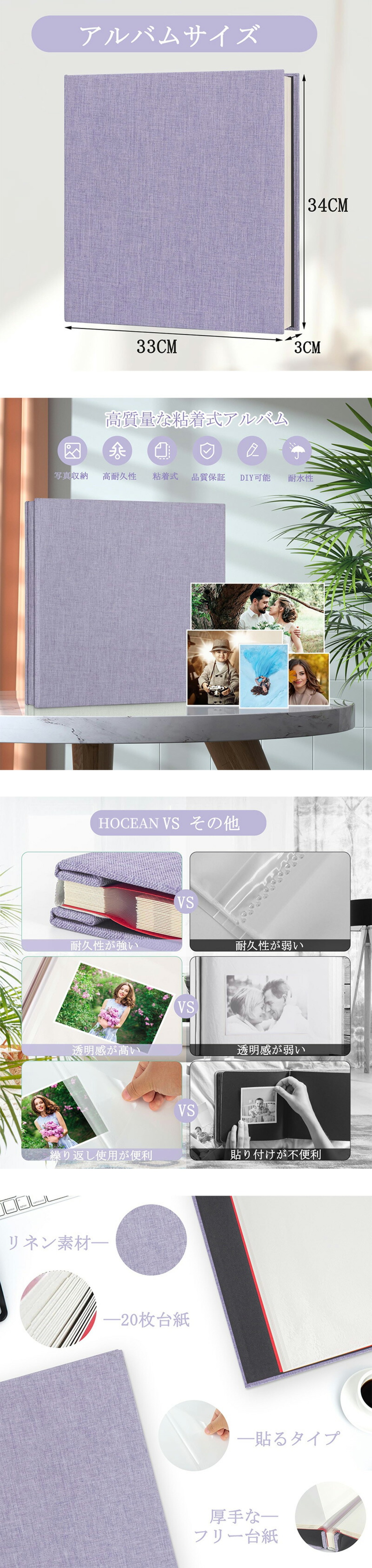 33×34CM 台紙 L KG 2L A4写真収納 20枚40ページ DIY フリーアルバム 家庭用 記念日 結婚式 誕生日 成長記録 ギフト パープル