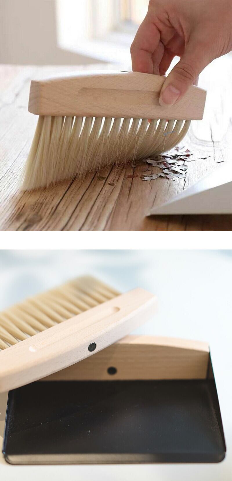 【おしゃれなデザイン】シンプルなデザインでインテリアに調和します。木材を使ったブラシと塵取りのスチール素材が調和し、部屋に馴染みます。
